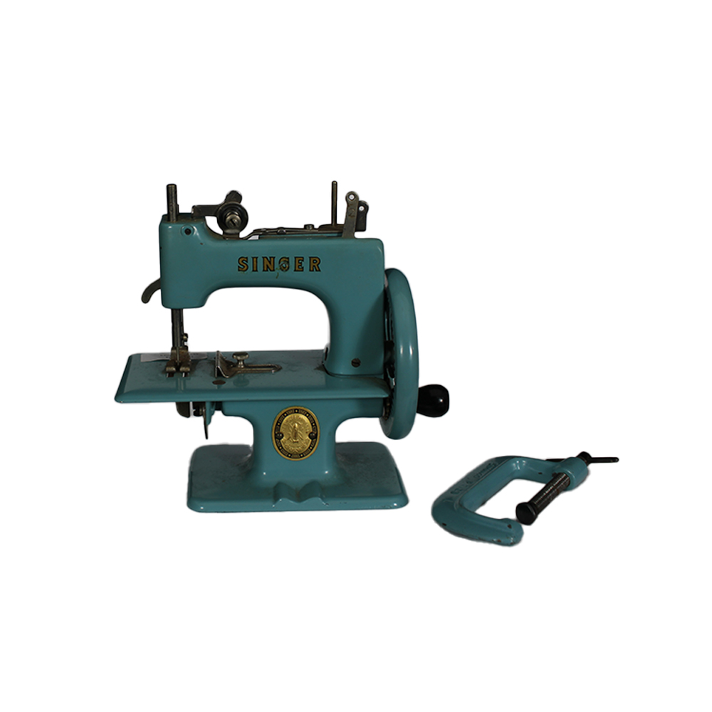 RARA MACCHINA DA CUCIRE BLUE SINGER 20 giocattolo Sewhandy con custodia originale e libretto delle istruzioni del modello Singer 367 Da revisionare. XX secolo h cm 16 x 19 x 9