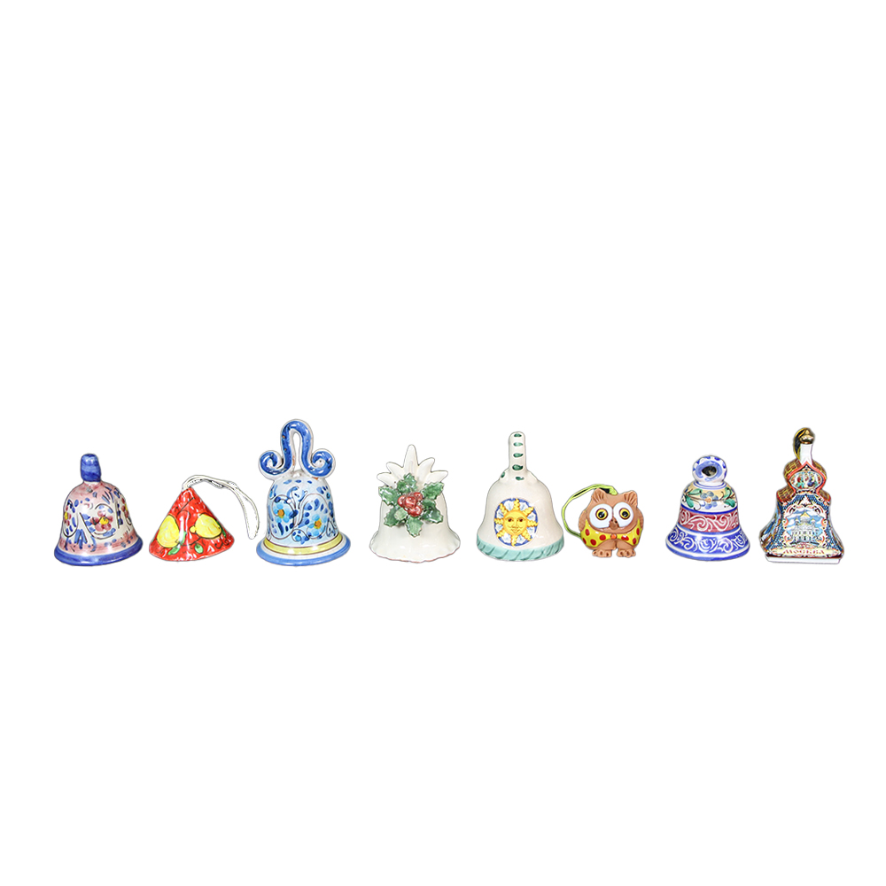 LOTTO DI 8 CAMPANELLINI in ceramica di diversa fattura. Italia XX secolo misure varie