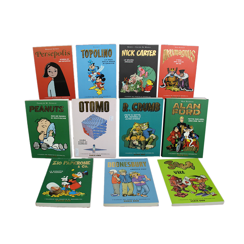 LOTTO DI 11 FUMETTI SERIE ORO TRA CUI Topolino, Peanuts jacovitti Alan Ford Zio Paperone e Nick Carter. Buone condizioni. Italia XX secolo h cm 26 x 18