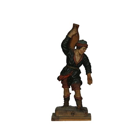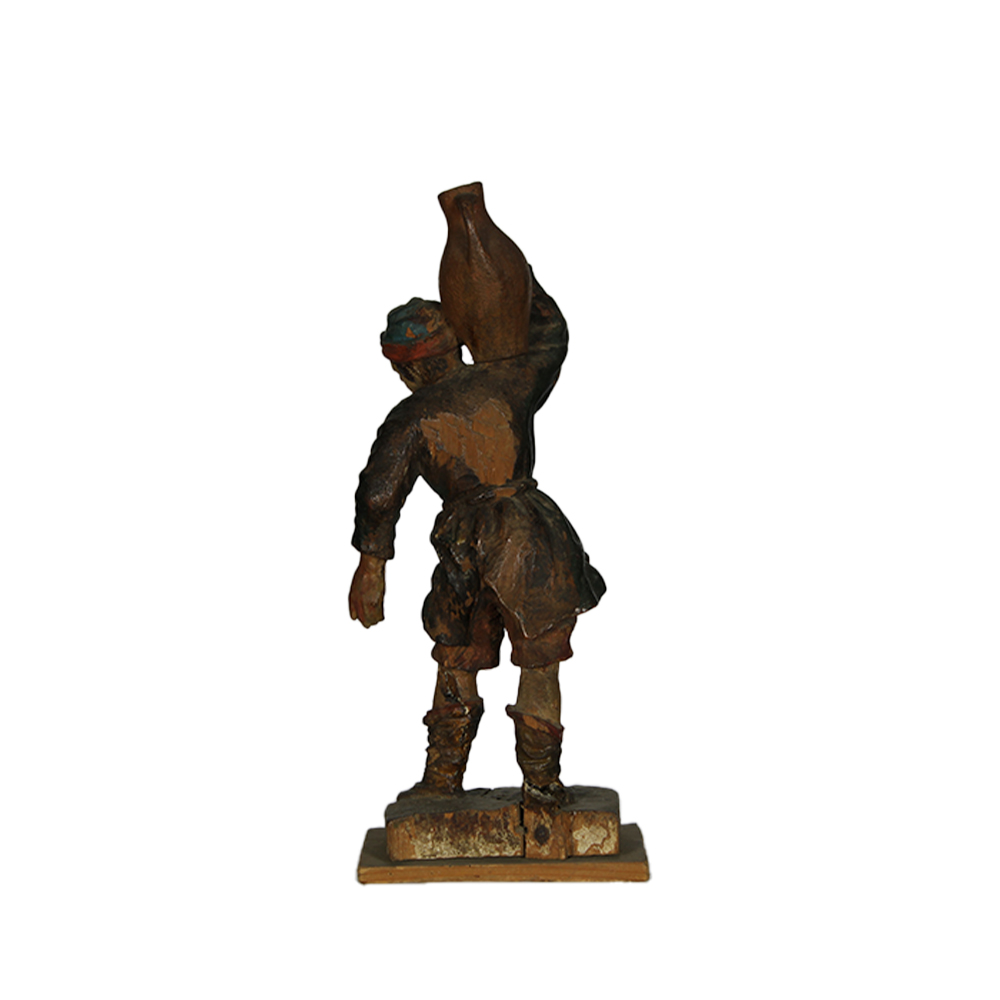 PASTORE DA PRESEPE in legno policromo scolpito "Il portatore d'acqua". Piccole mancanze. Italia XVIII sec h cm 27 x 11 x 8
