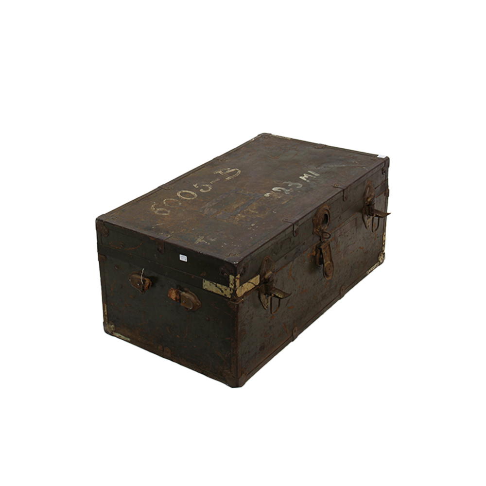 VECCHIO BAULE VINTAGE in metallo e legno. Usure e mancanze. XX secolo h cm 34 x 78 x 43