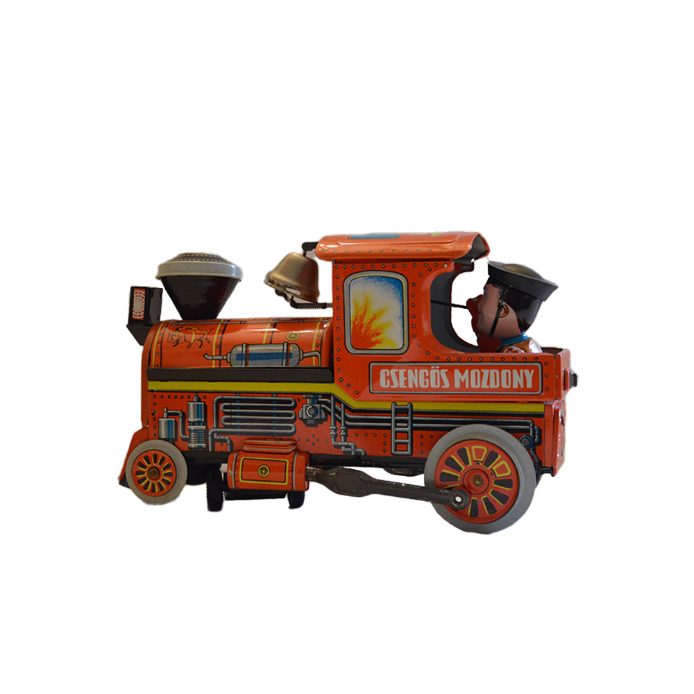 Locomotiva a batteria con scatola e istruzioni Giocattolo in latta serigrafata a batteria in buone condizioni con campanello anno 1980 h cm 17 x 10 x 28