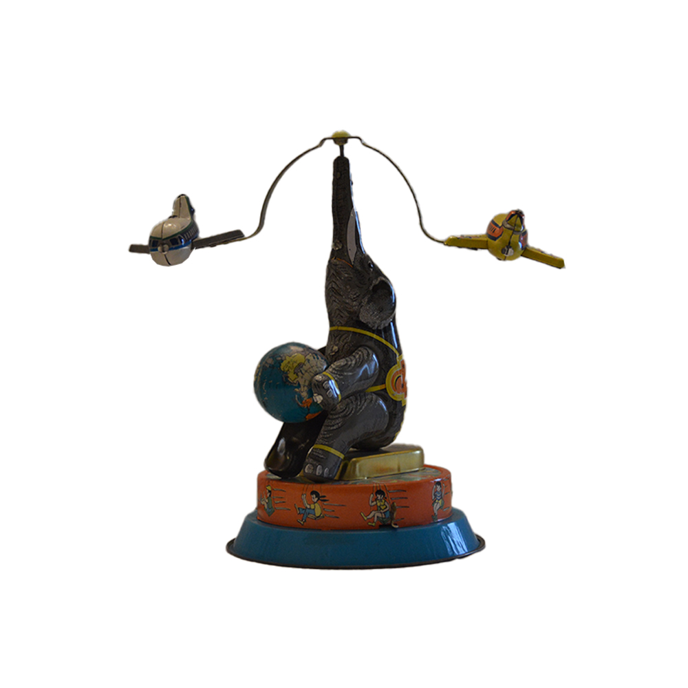 Elefante giocoliere Giocattolo in latta serigrafata origine Cina acquistato in Polonia ottime condizioni funzionamento a molla anno 1980 h cm 24 x 26 x 15