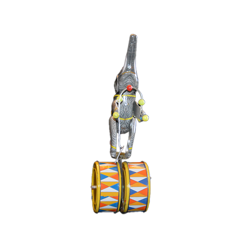 Elefante giocoliere equilibrista Giocattolo in latta serigrafata origine Cina acquistato in Polonia ottime condizioni funzionamento a molla anno 1980 h cm 29 x 9 x 12
