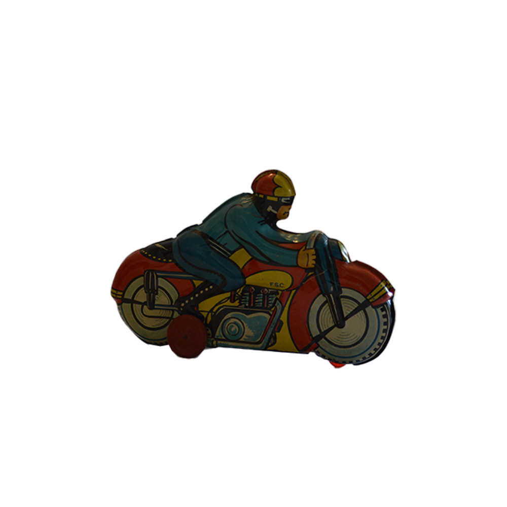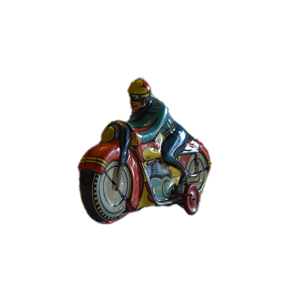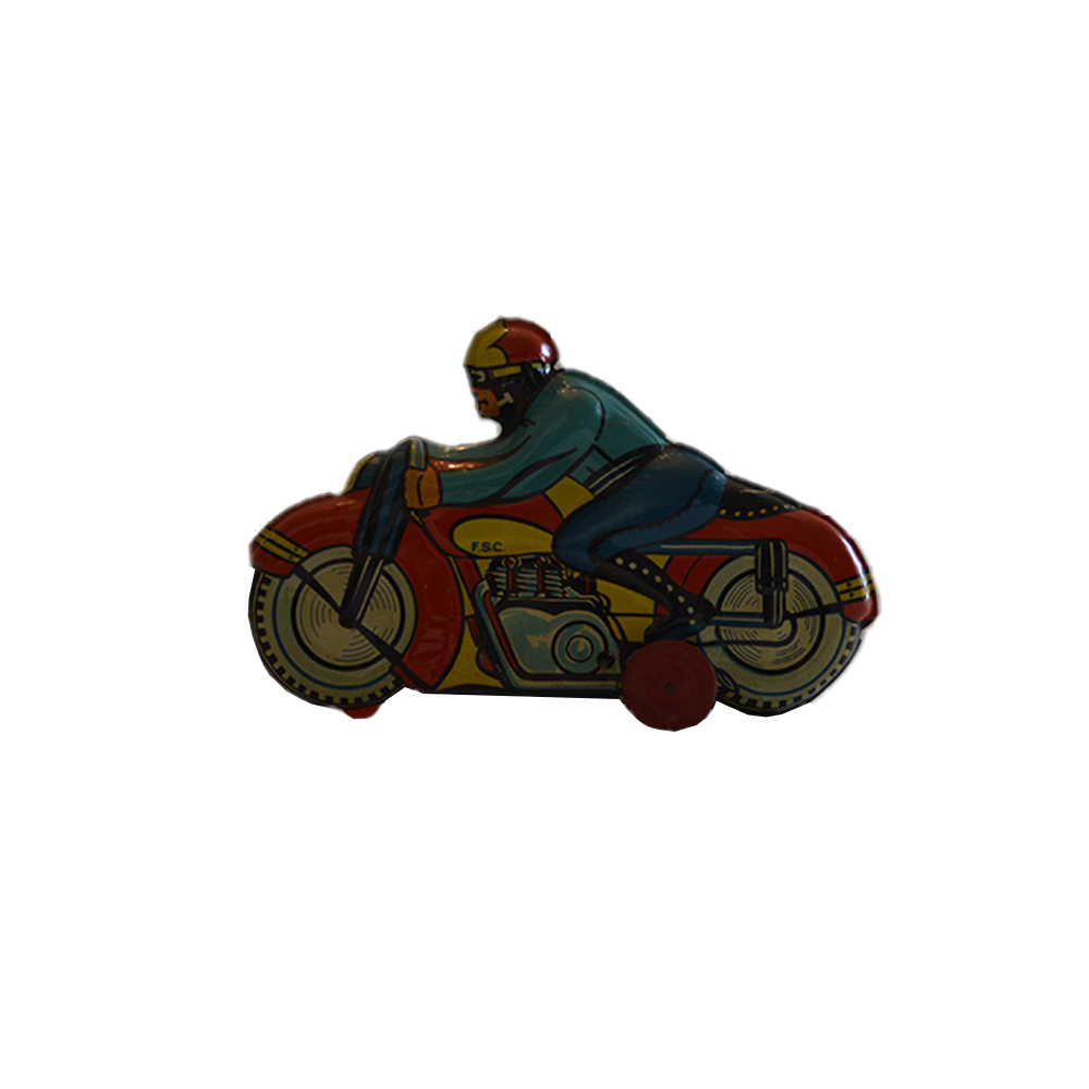 Motociclista a molla Giocattolo in latta serigrafata funzionamento a molla in buone condizioni con sigla FSC anni 80 h cm 15 x 6 x 24