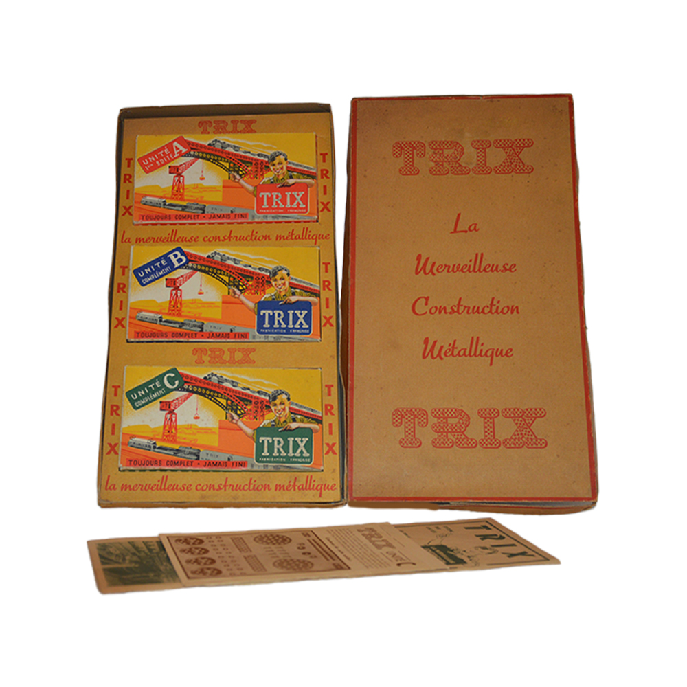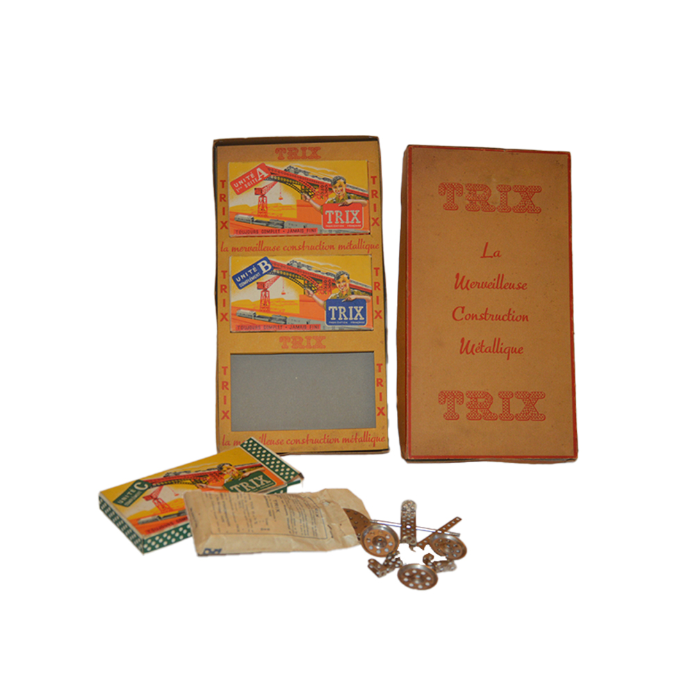 Meccano Triz completo Scatola di costruzioni metalliche in buone condizioni completa di istruzioni provenienza Francia anno 1922. h cm 2 x 19 x 35
