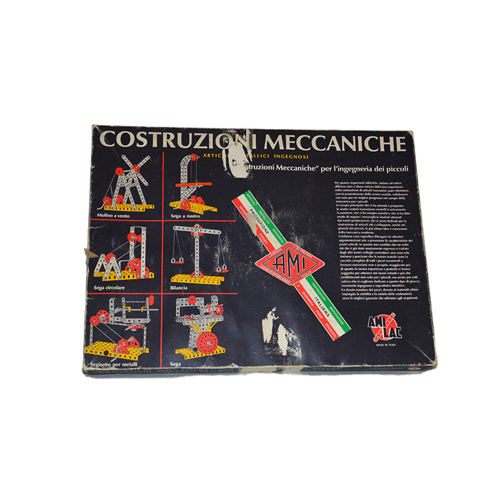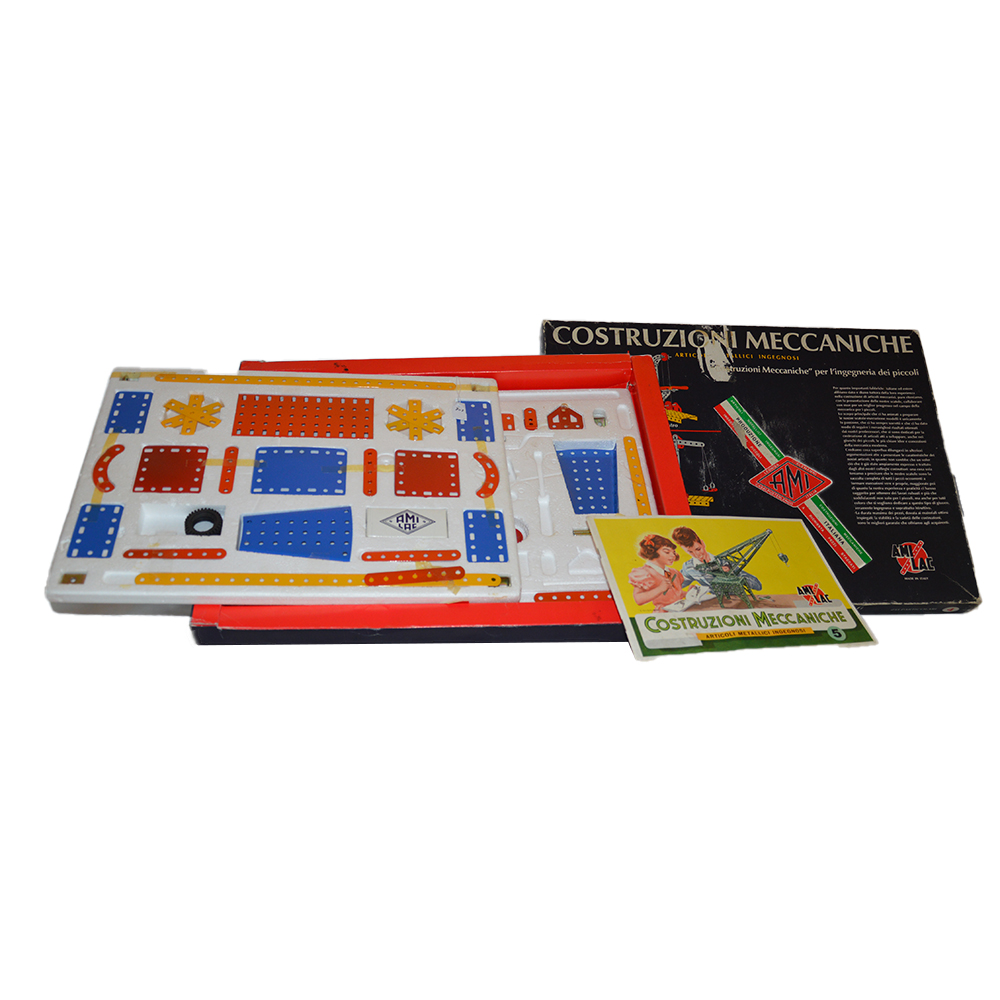 Meccano Alemanni completa Scatola di costruzioni meccaniche AMI ditta Leonida Alemanni provenienza Italia, in buone condizioni anno 1960 completa di istruzioni. h cm 4 x 47 x 35