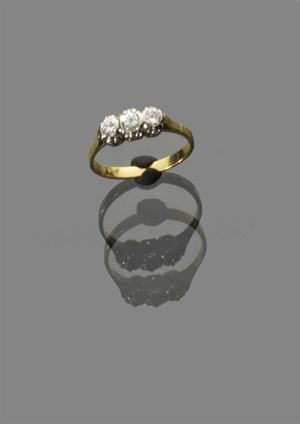 ANELLO Anello in oro giallo modello trilogy con tre diamanti per complessivi ct 0,35 ca Peso gr 2,00 Yellow gold ring with three diamonds Trilogy model for a total of approx 0.35 ct Weight 2.00 gr
