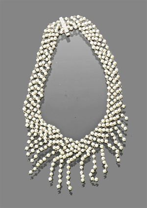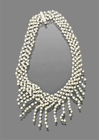 COLLANA DI PERLE Collier in platino con perline pendenti . Fermaglio a...