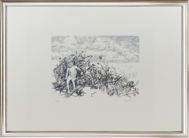 Renzo Vespiniani, ”Nudo tra i rovi”, 1974, Acquaforte su carta, edizione 4/99,