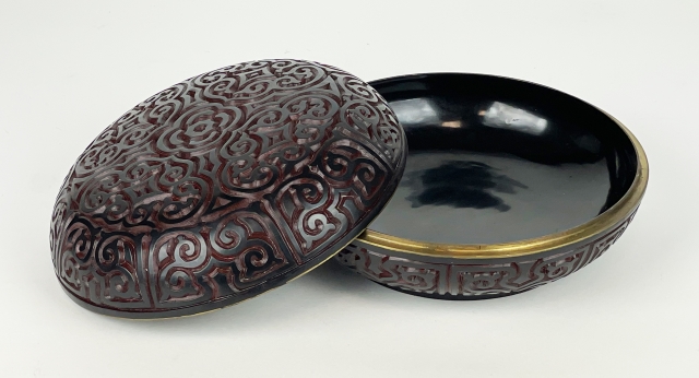 Ciotola cinese in lacca, 20° secolo Decorazioni in rilievo nero...