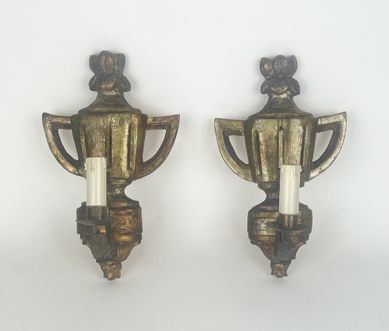 Coppia di applique da parete in legno intagliato e dorato, Luigi XVI.