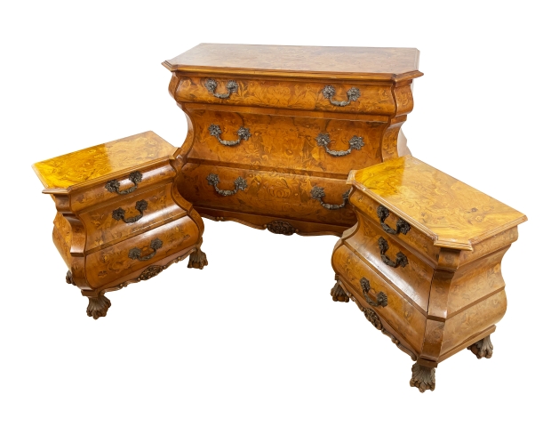 Set comò e comodino, XX secolo. Set in stile olandese, in legno...