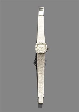 LONGINES Orologio da donna con bracciale in oro bianco quadrante con contorno di diamanti taglio brillante per complessivi ct 1,30 ca anni '60 Peso gr 42,00 Longines 1960's LONGINES watch white gold band and face surrounded by brillant cut diamonds for approx total of 1,30 kt weight gr 42,00