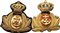 Lotto di due frgi per berretto da ufficiale della Regia Marina, uno da motorista con ovale rosso e ancora metallica specifica, uno da medico con ovale bianco ed ancoretta caricata di croce rossa. In ottimo stato