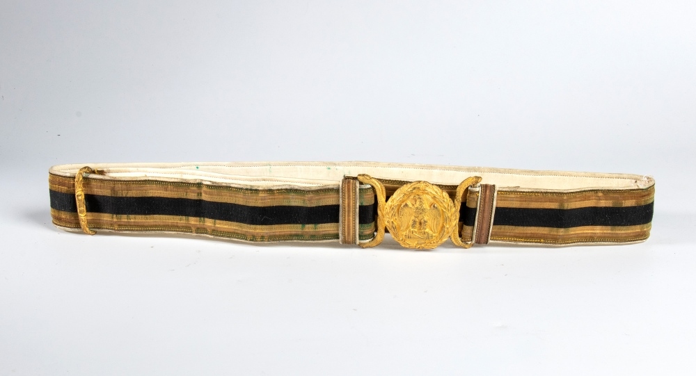 Cintura per alta uniforme in broccato foderato di marocchino con fibbia in bronzo dorato. In ottimo stato.
