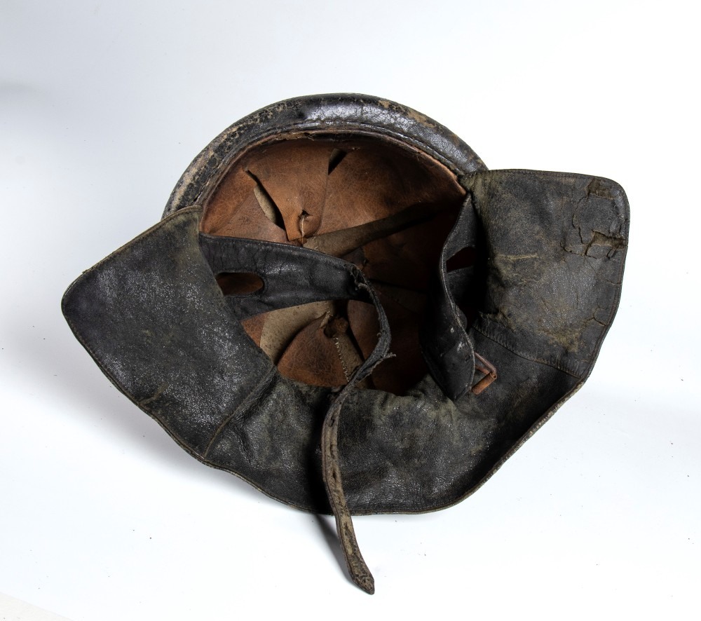 Casco da motociclista con fregio frontale prima metà XX sec.