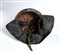Casco in pelle nera tipo carrista con fregio frontale di artiglieria campale, utilizzato da una staffetta portaordini del reggimento.