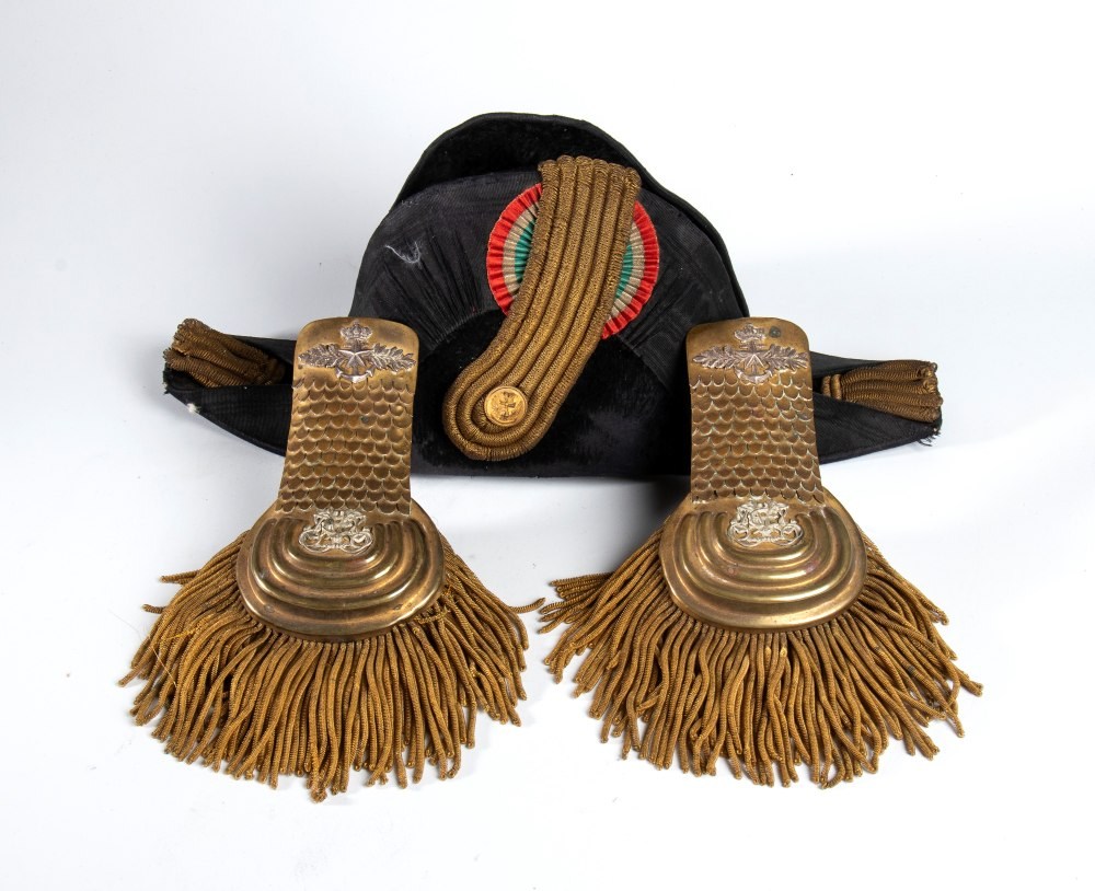 Lotto composto da feluca e spalline da Ufficiale inferiore della Regia Marina. In buono/ottimo stato.
