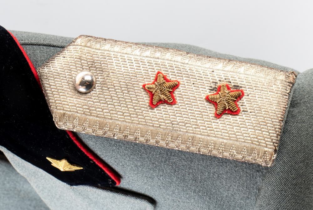 Gabardin grigio con distintivo di grado alle controspalline. Utilizzata durante il periodo del Regno del Sud, tra il 1943 e il 1946, appartenuta al generale Merzari