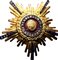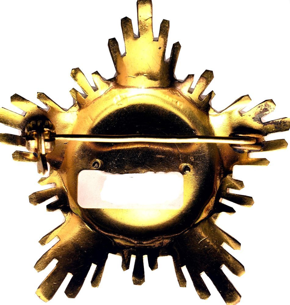 Insegna di Prima classe del secondo tipo. Metallo dorato e pietre incastonate sul perimetro del disco centrale e sui cinque raggi della stella. in ottimo stato.