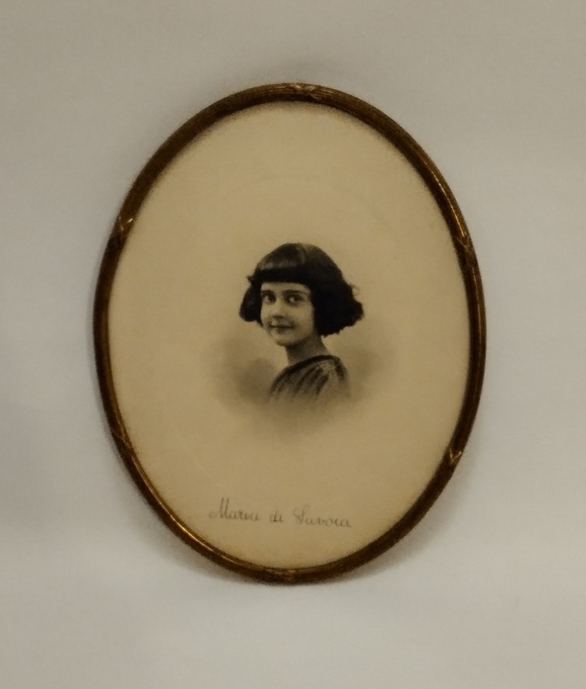 Fotografia in cornice ovale della principessa Maria di Savoia in età giovanile, in ottimo stato.