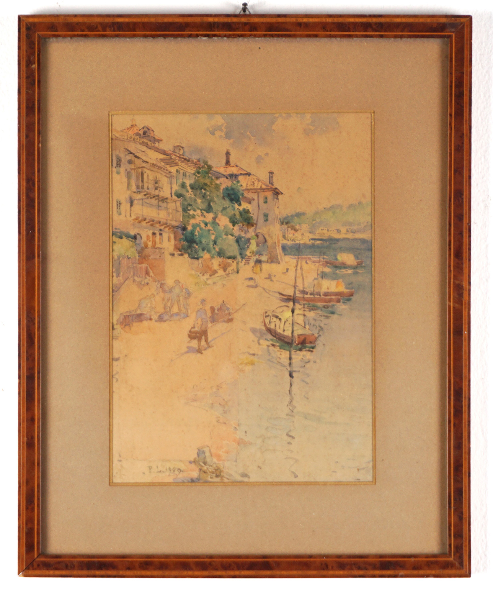 Scuola lombarda, inizio secolo XX - Scorcio di paese lacustre, 1909