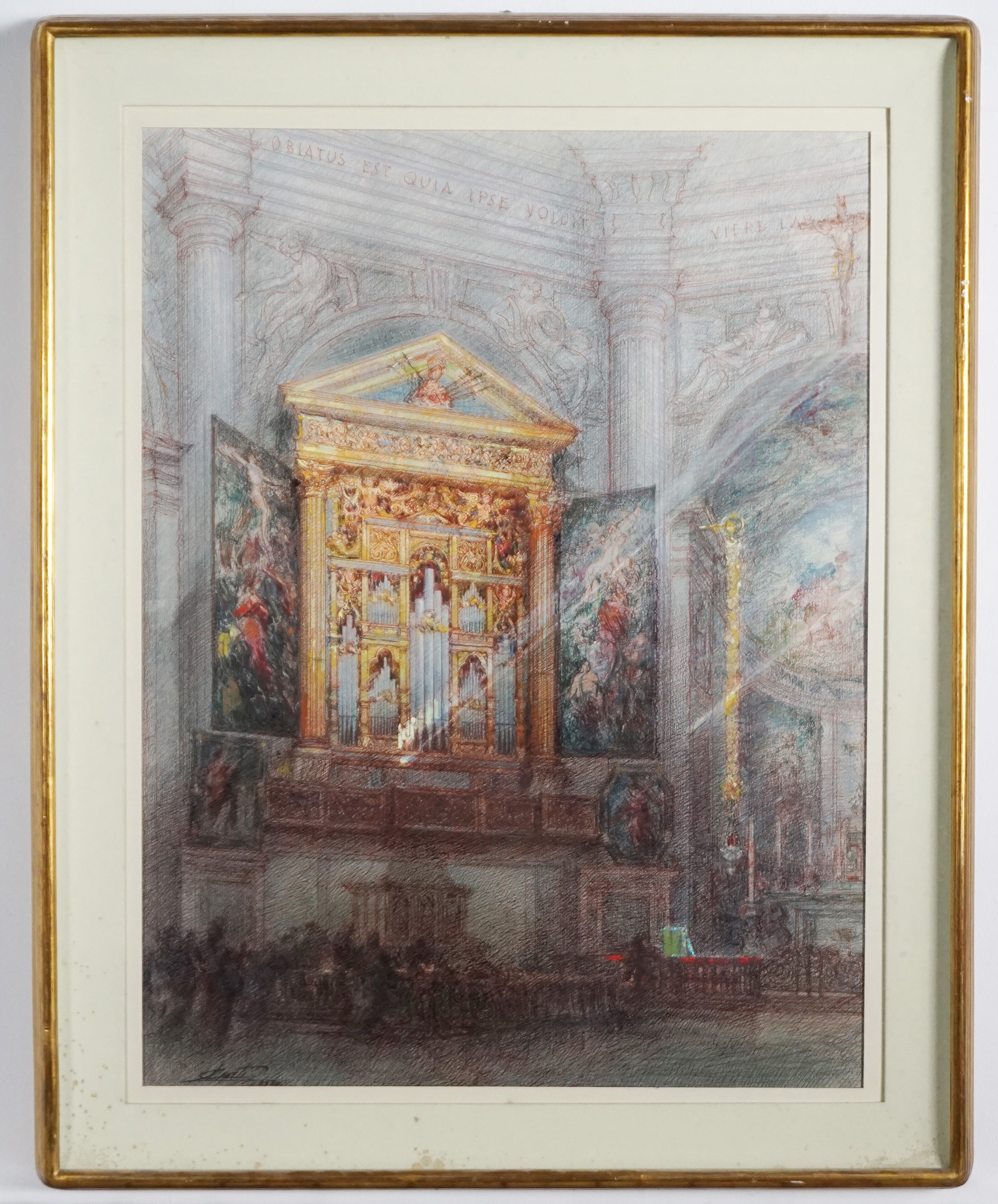 Luigi Curti (Milano 1899 - 1990) - Interno della chiesa della passione Milano, 1970