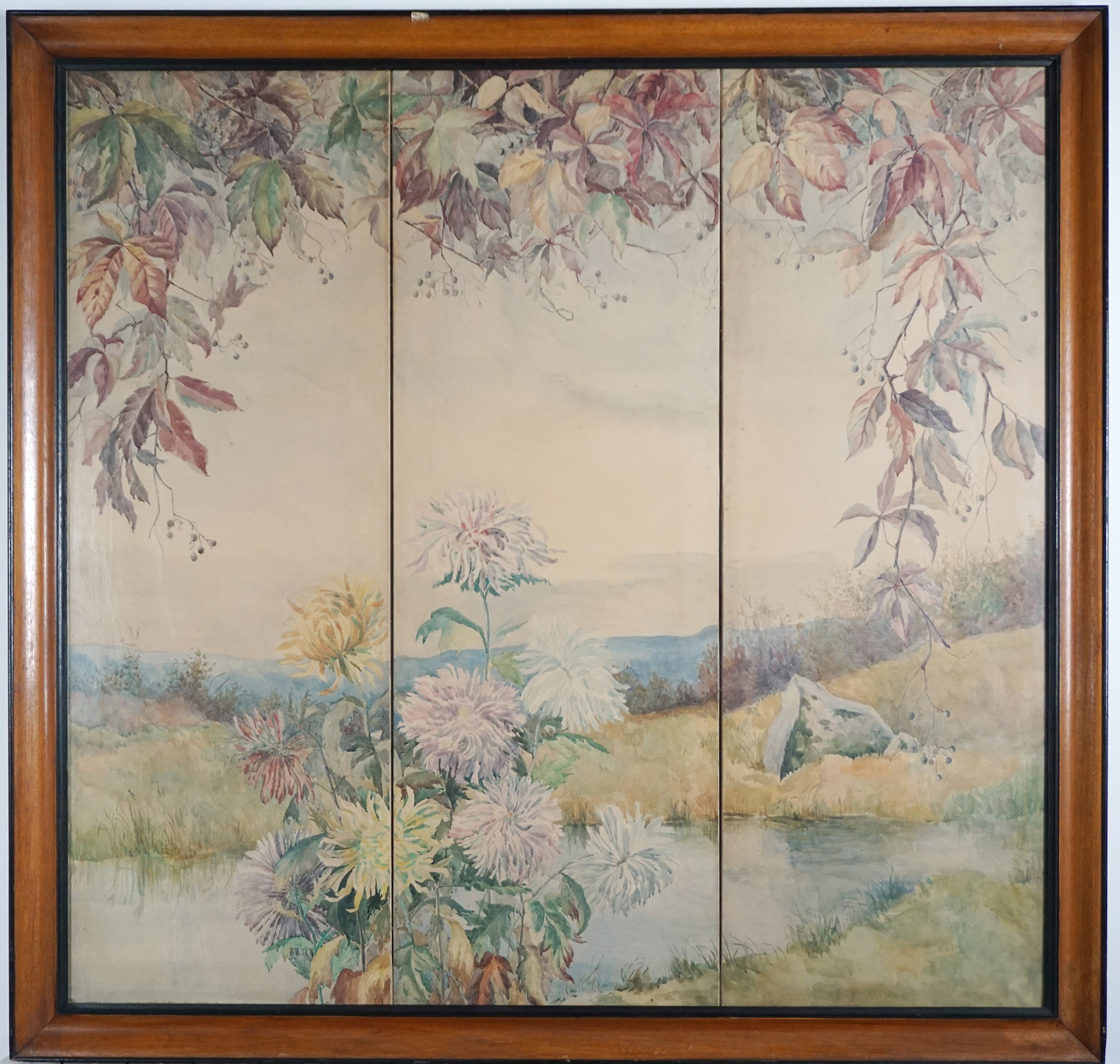trittico di panelli ad acquarello su carta, in cornice