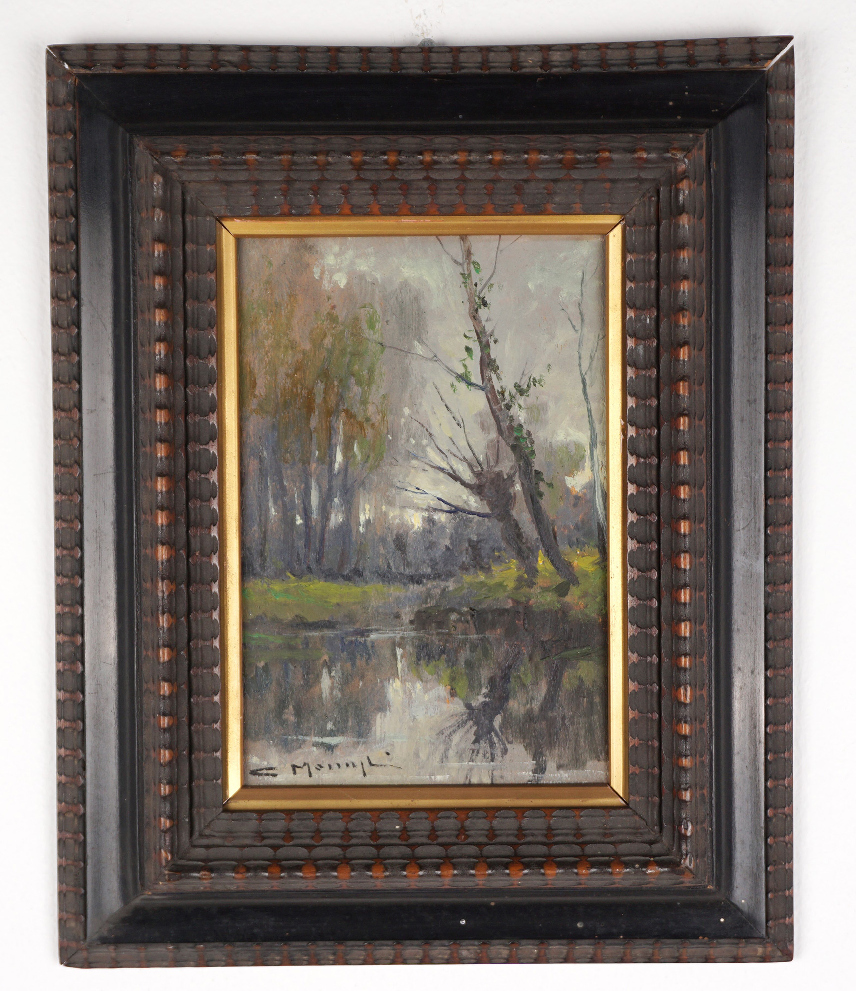 Cleto Moiraghi (Binasco 1889 - Milano 1943) - Paesaggio boschivo con laghetto