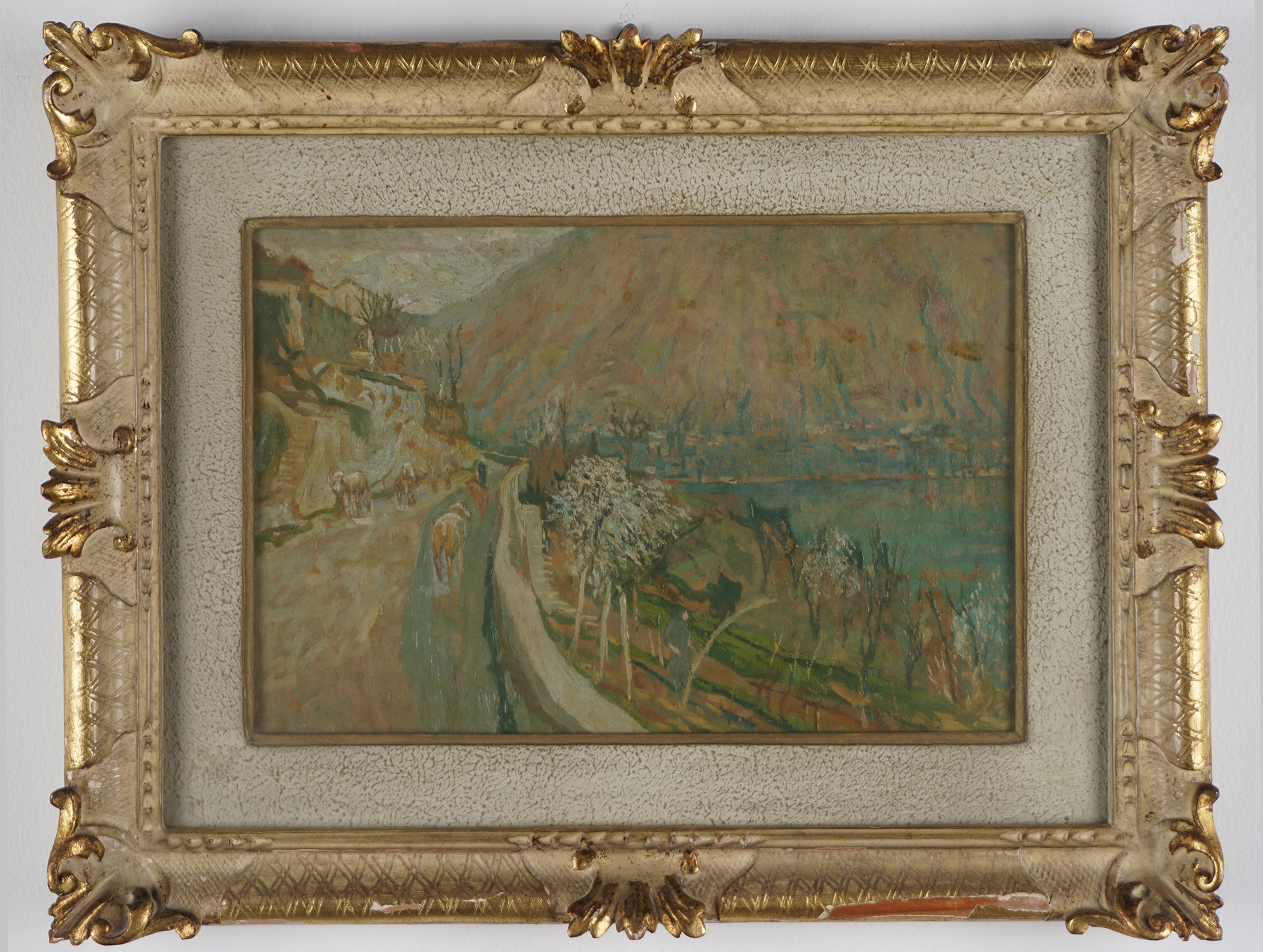 olio su cartoncino, in cornice