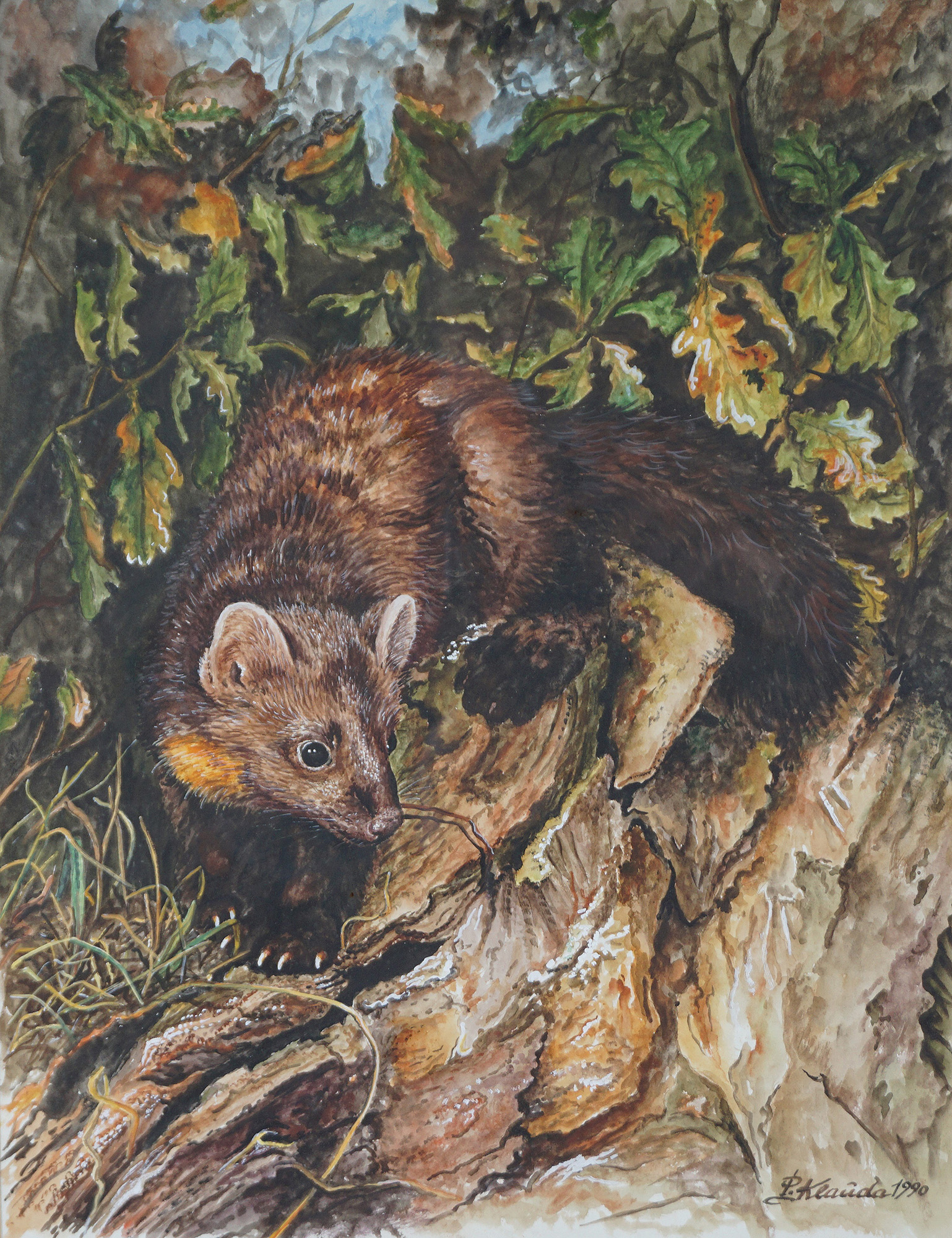 Anonimo di inizio XX secolo - Martora in paesaggio boschivo, 1990