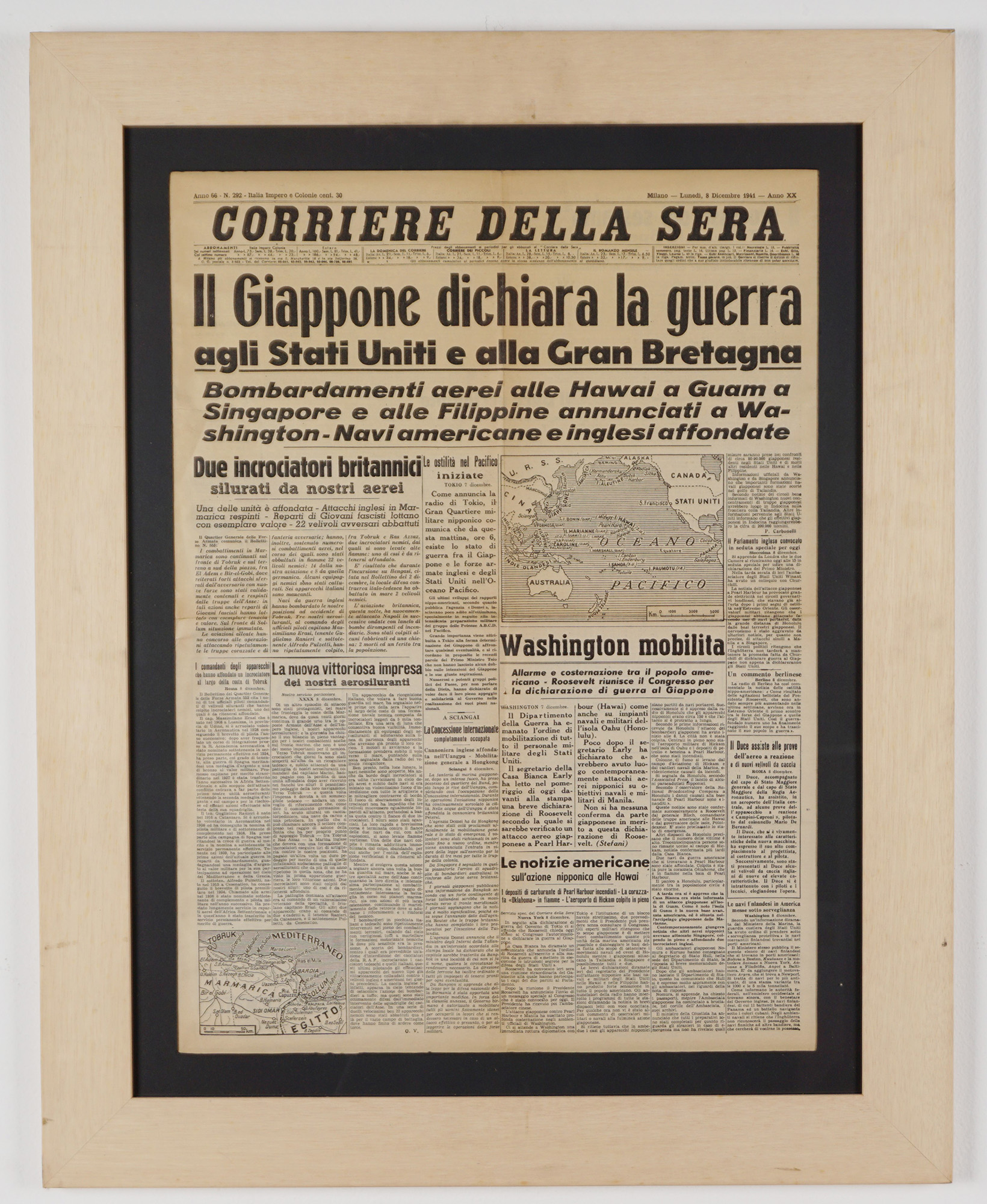 Lotto 98 | Prima pagina del corriere della sera 8 Dicembre '41 con l'annuncio dell'attacco giapponese a Pearl Harbor
