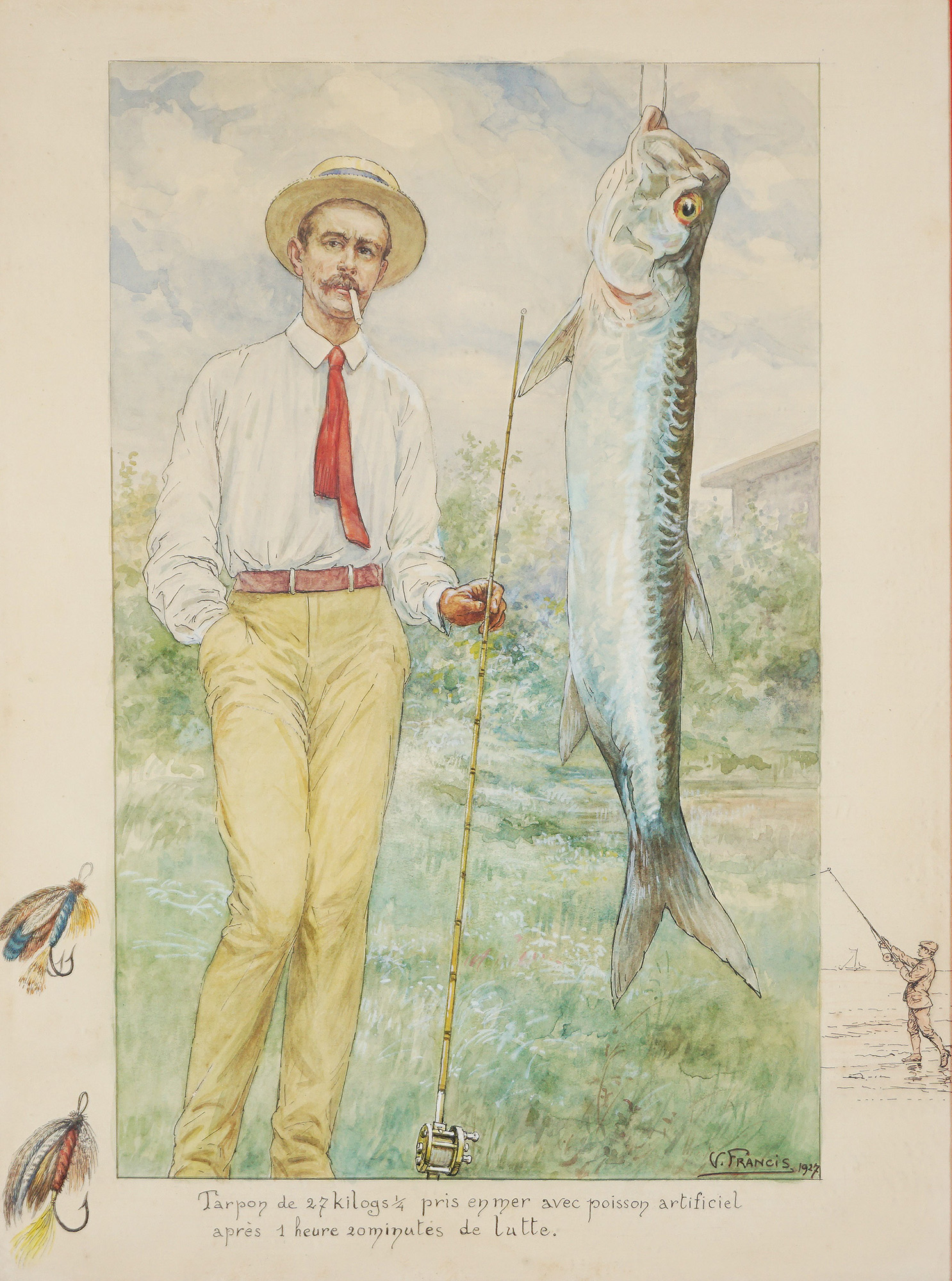 Scuola francese, inizi secolo XX - Pescatore con tarpone