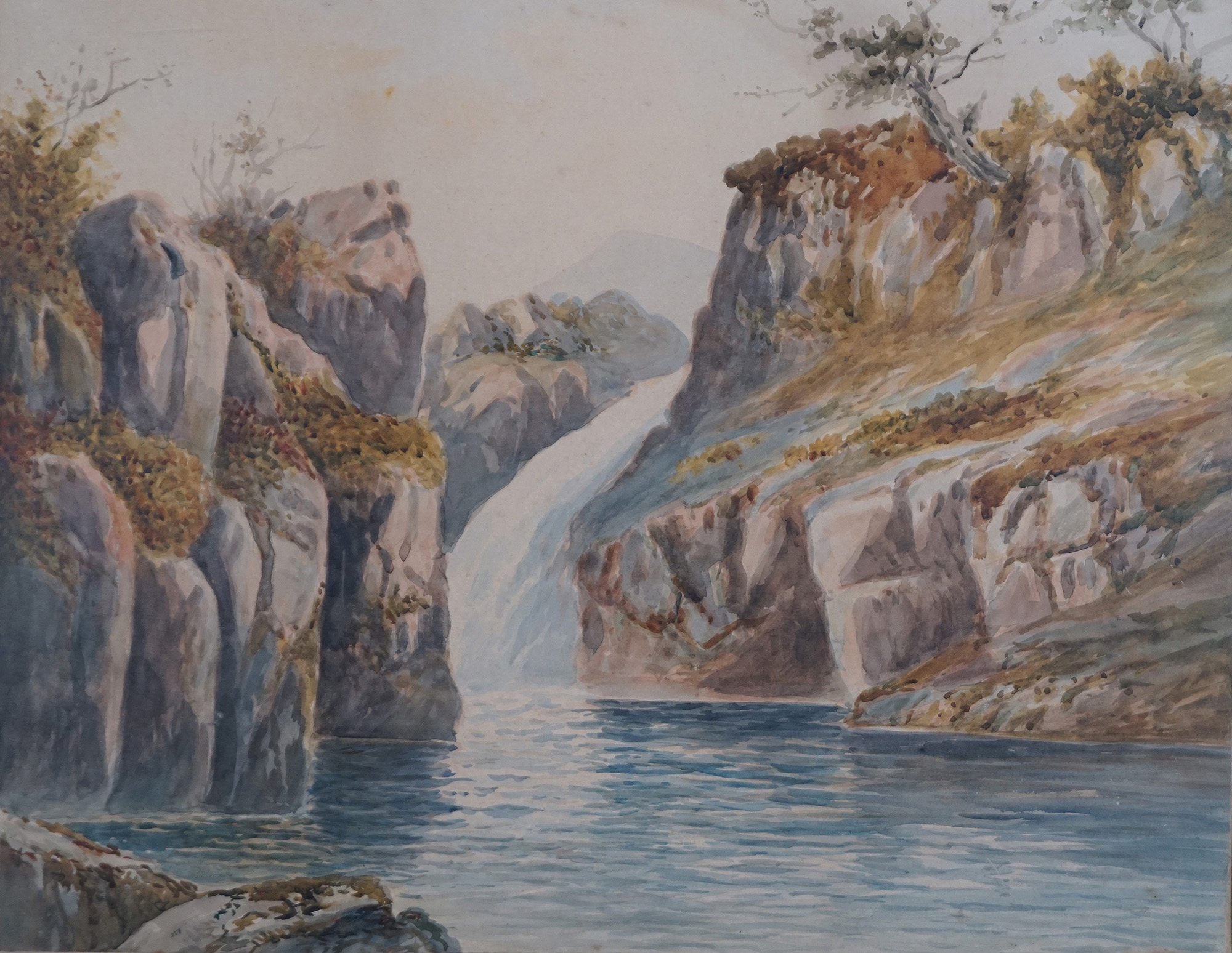 Scuola inglese del XIX secolo - Paesaggio con cascata