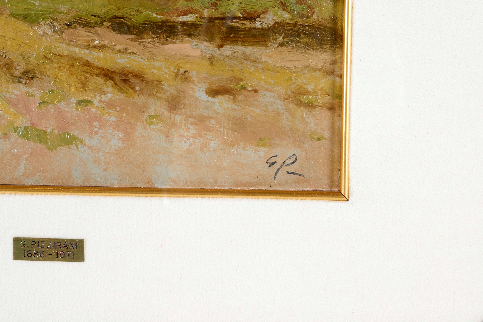 GUGLIELMO PIZZIRANI (Bologna 1886 - 1971) "Paesaggio". Olio su tavola. Cm 25x32. Opera firmata in basso a destra G. Pizzirani.