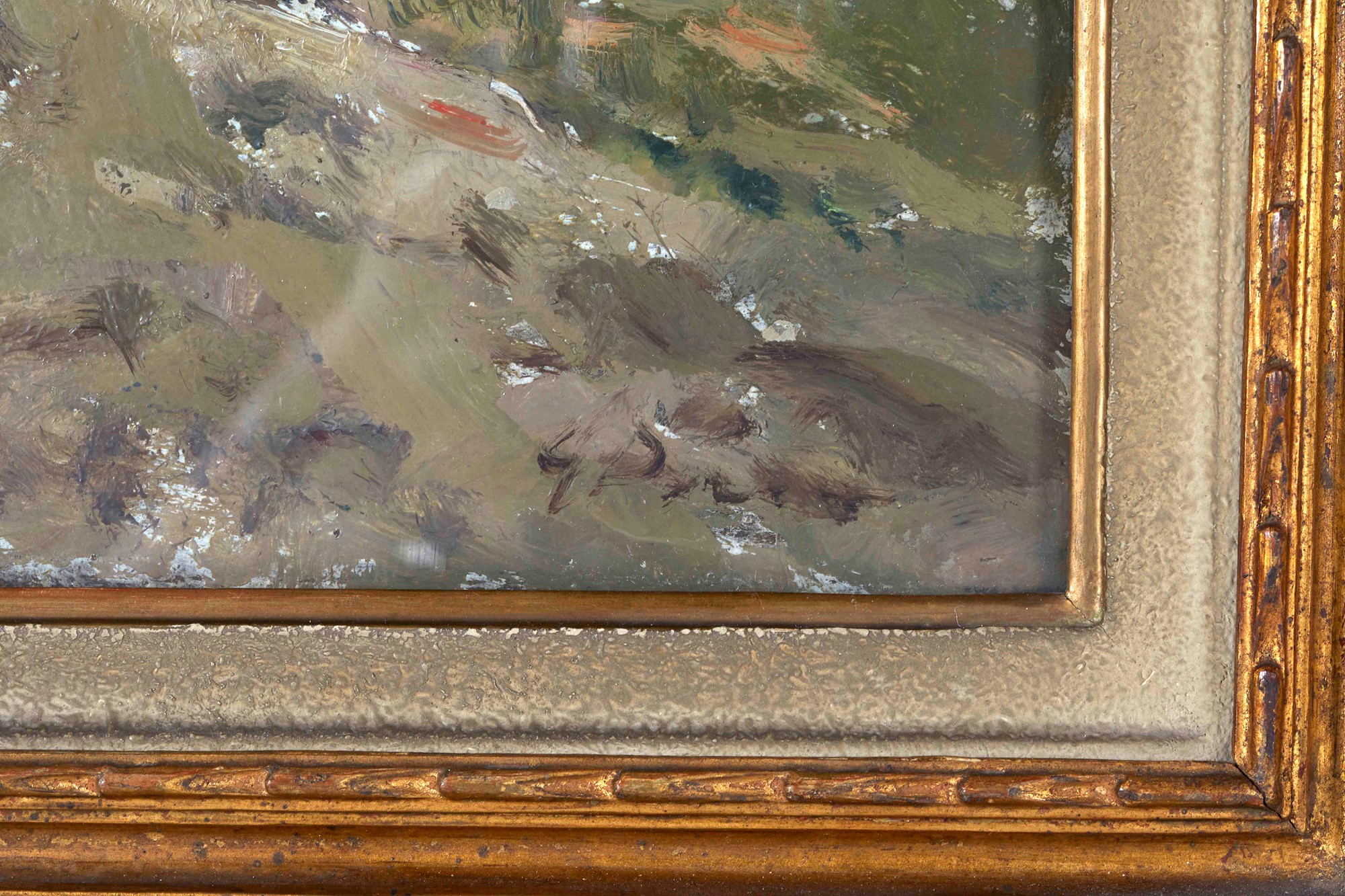 GUGLIELMO PIZZIRANI (Bologna 1886 - Bologna 1971) "Paesaggio", 1948. Olio su cartone. Cm 18,5x24,5. Opera firmata in basso a destra G. P. Al retro opera datata Bologna 1948 e dedicata.