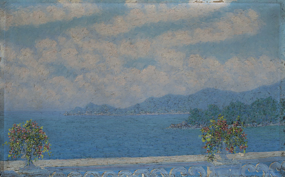 Giovanni Molteni (Cantù 1898 - Sorengo 1990) - "Portofino dal Kursaal di Rapallo" olio su tela (cm 76.5x121) Firmato e datato XXVI in basso a destra In cornice