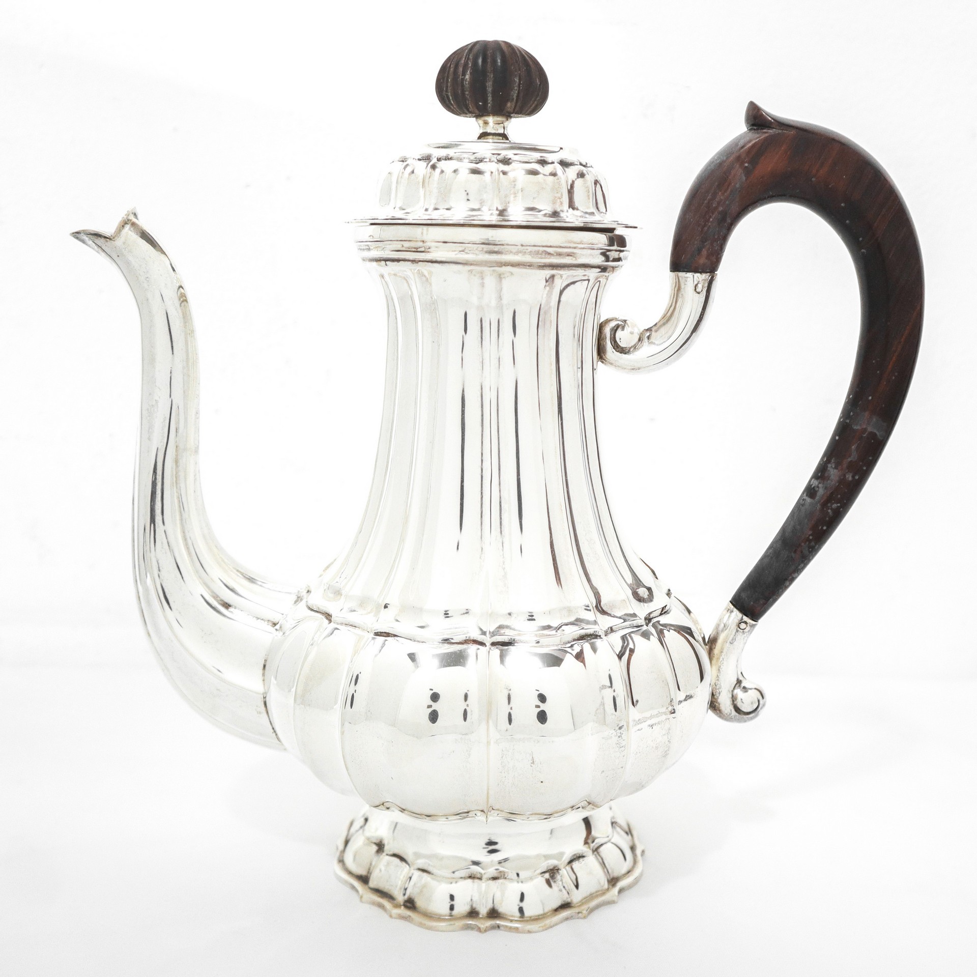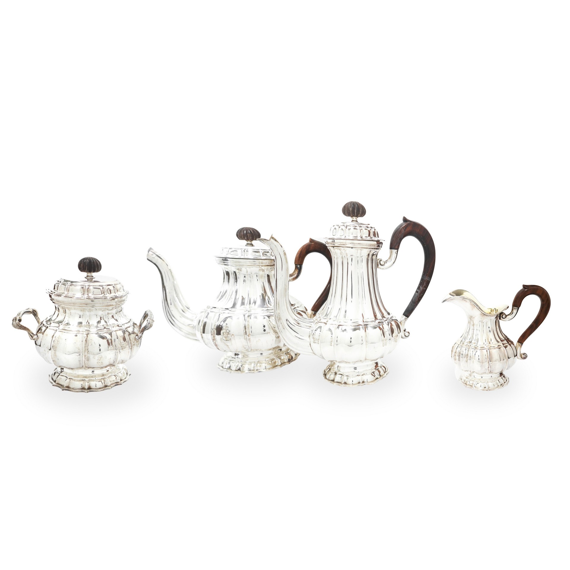 Servizio da te in argento 800 gr. 2840 Servizio composto da: teiera, caffettiera, lattiera, zuccheriera. Punzone 800 su ciascun pezzo.