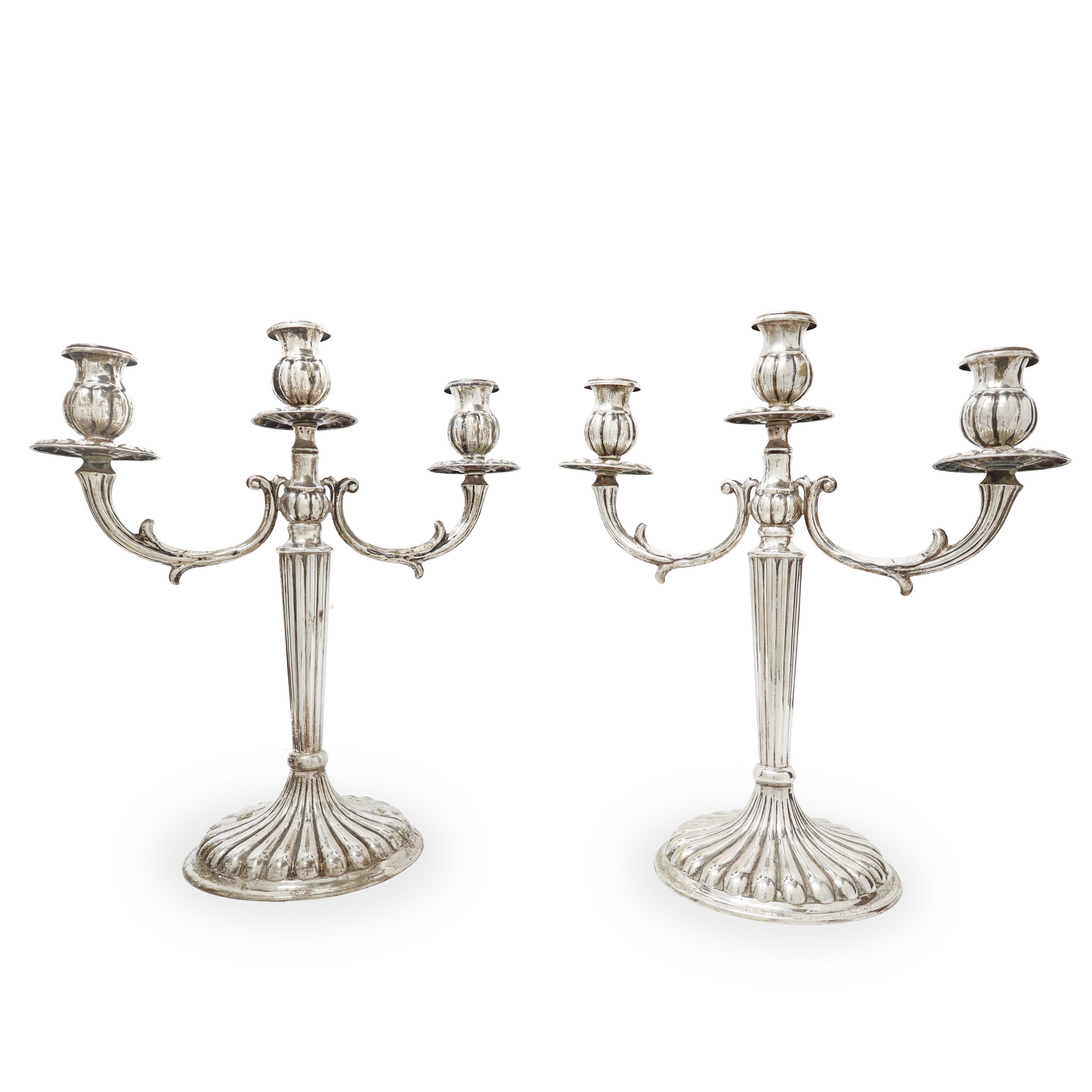 Coppia di candelabri a 3 luci in argento 800 gr. 1086 ca. Punzone 800