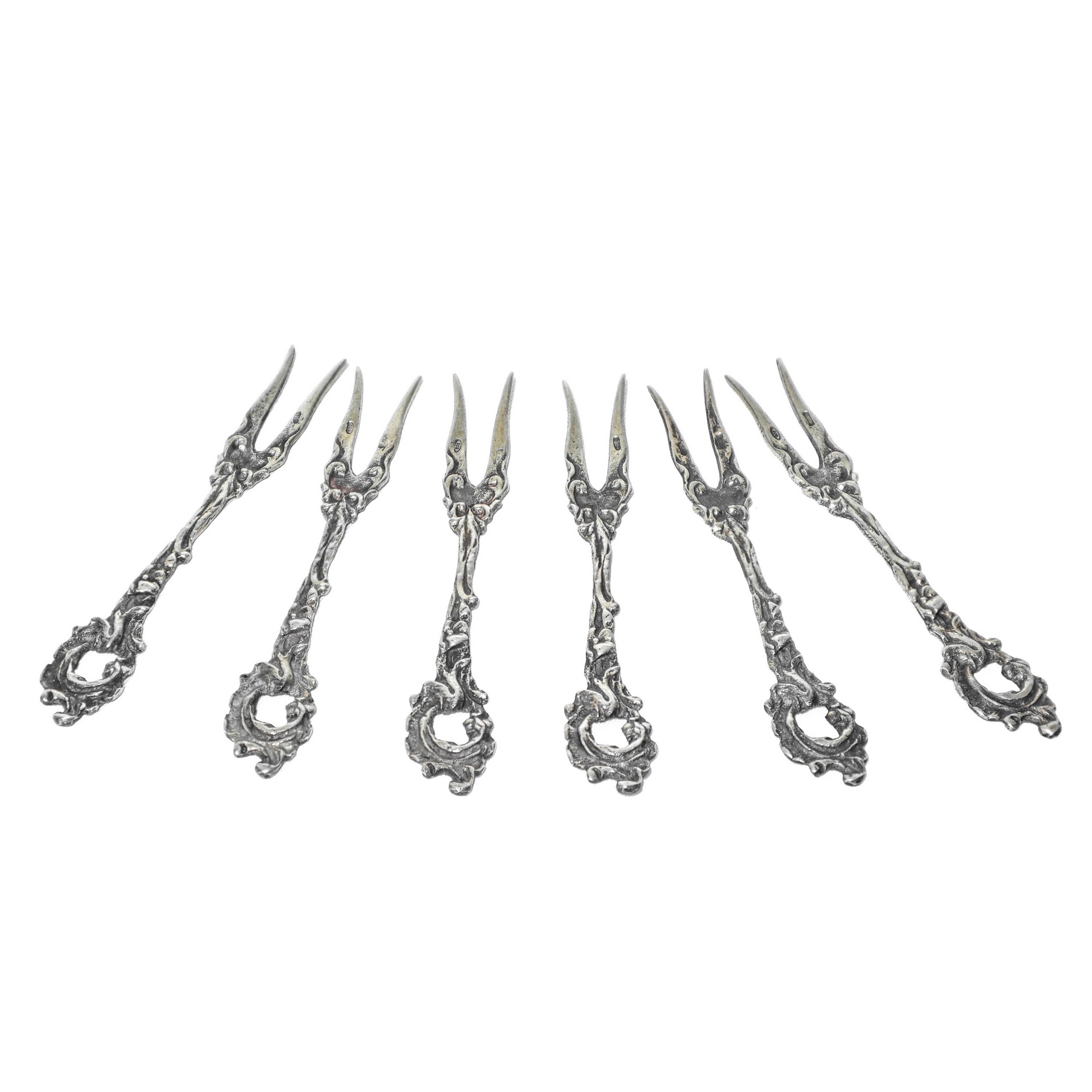 N 6 forchettine da aperitivo in argento 800
