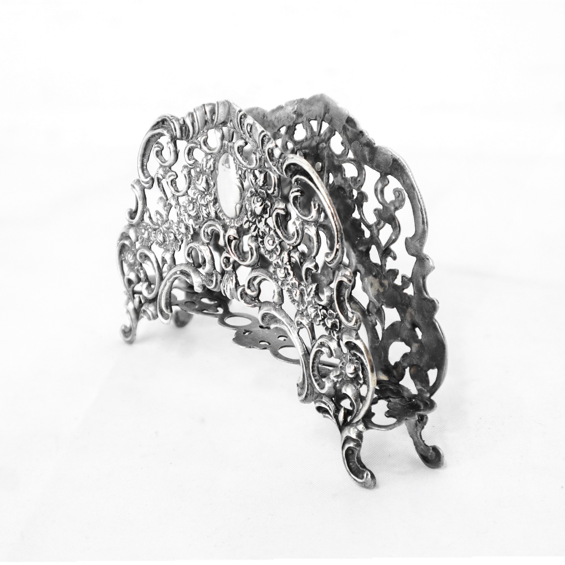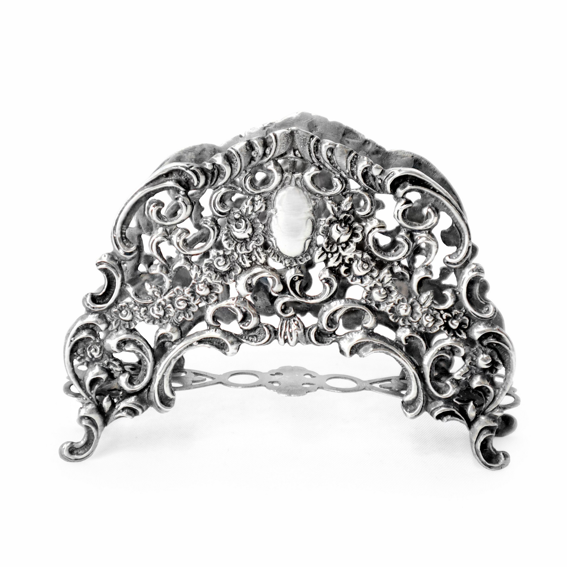 Portatovaglioli in argento 800 con lavorazione di fiori