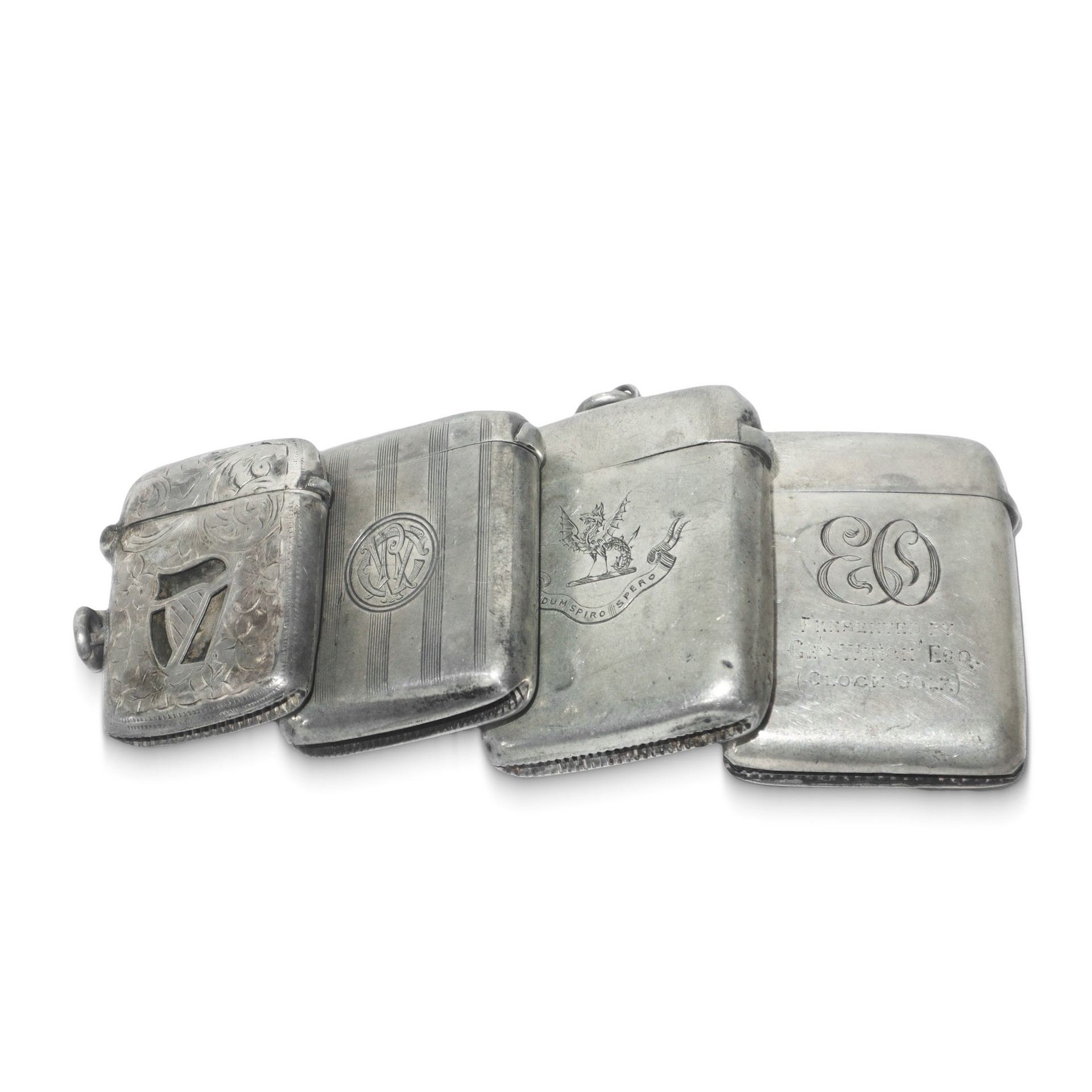 Quattro portafiammiferi in argento Inghilterra, late 19th century
