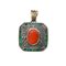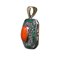 Ciondolo in oro bianco a basso titolo e argento con diamanti taglio antico, corallo giapponese e smeraldi