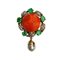 Spilla in oro con corallo rosso al centro foglie con diamanti e cinque smeraldi
