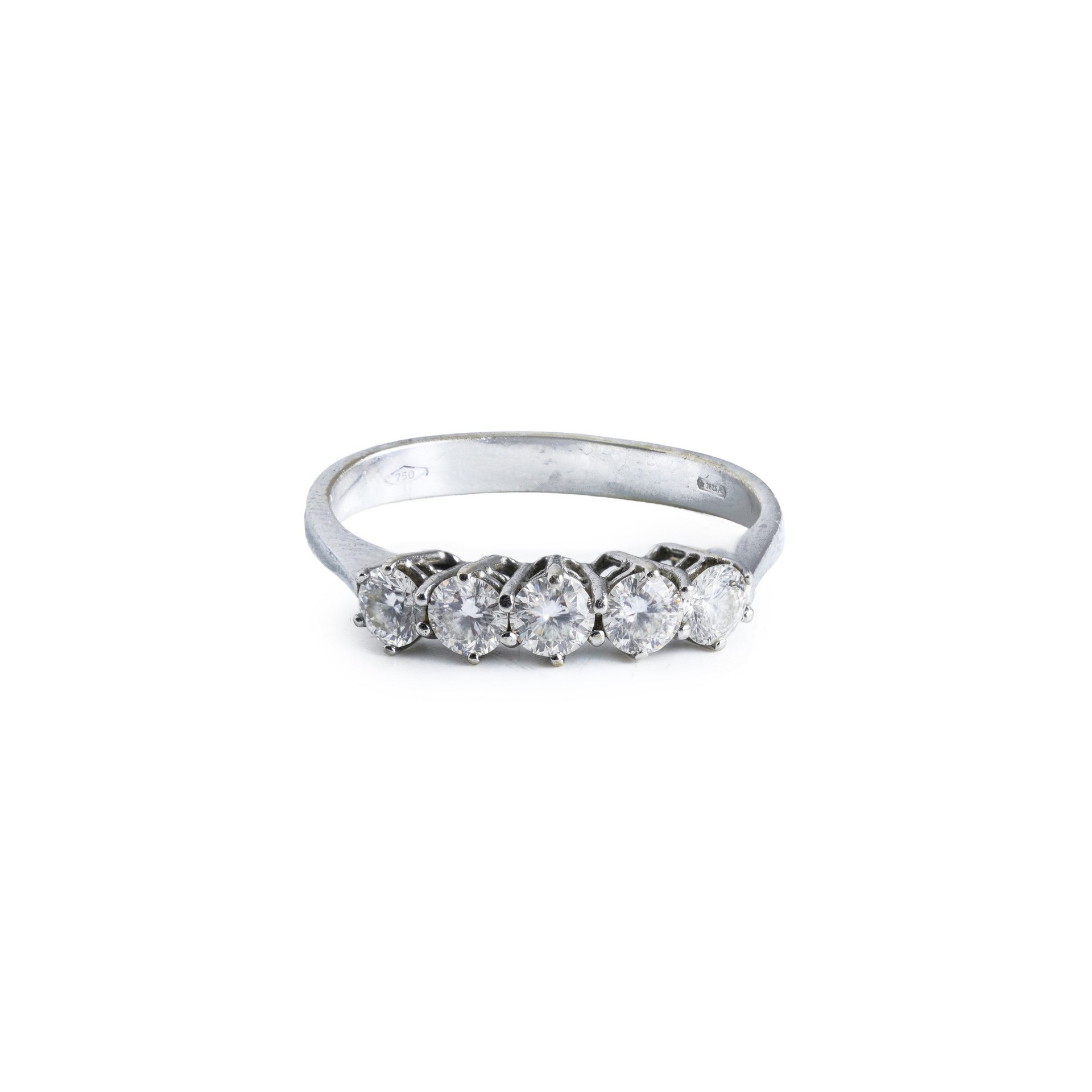 Veretta in oro bianco con 5 brillanti al fronte gr. 3,2