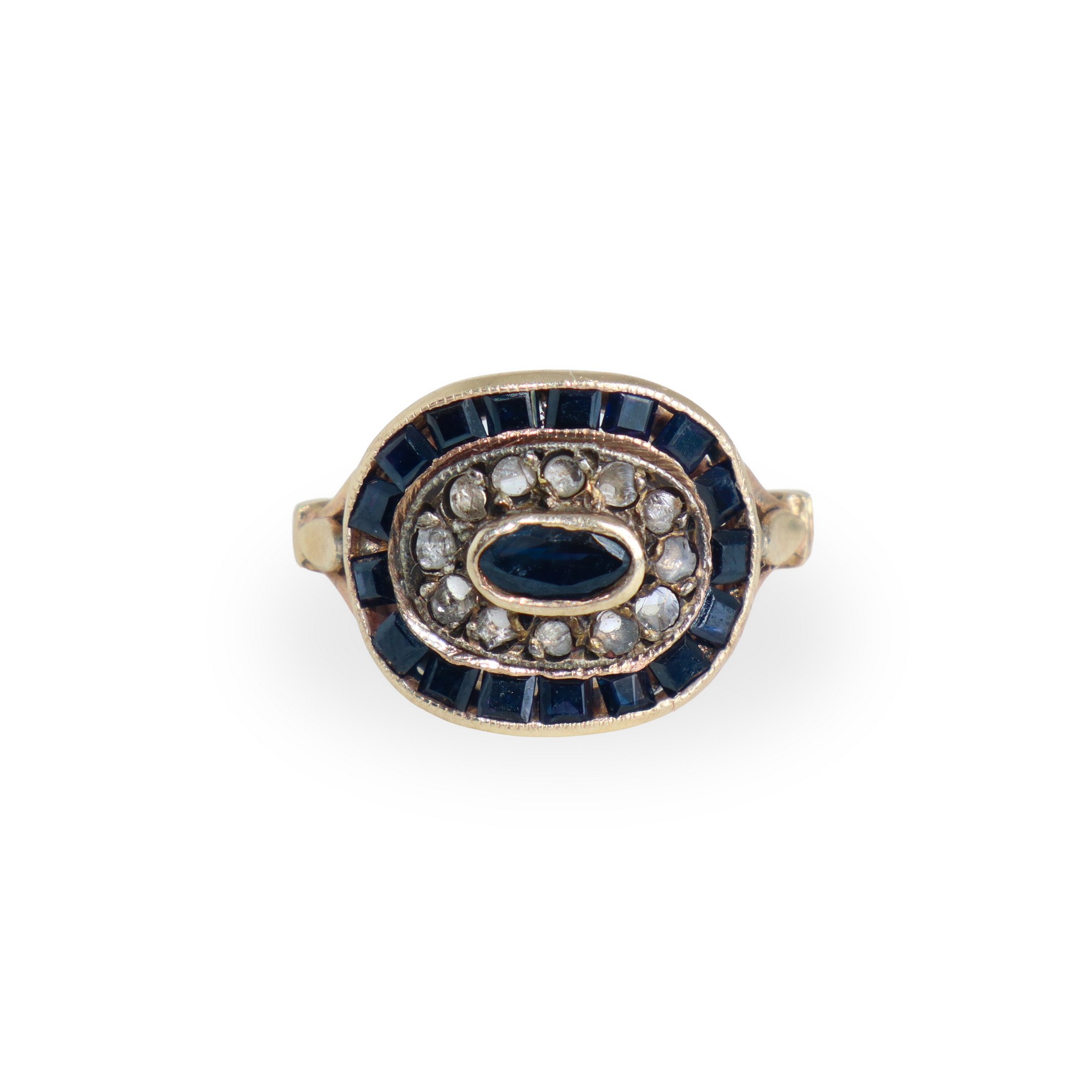 Anello in oro 500 con scaglie di brillanti e pietre Gr. 3,7