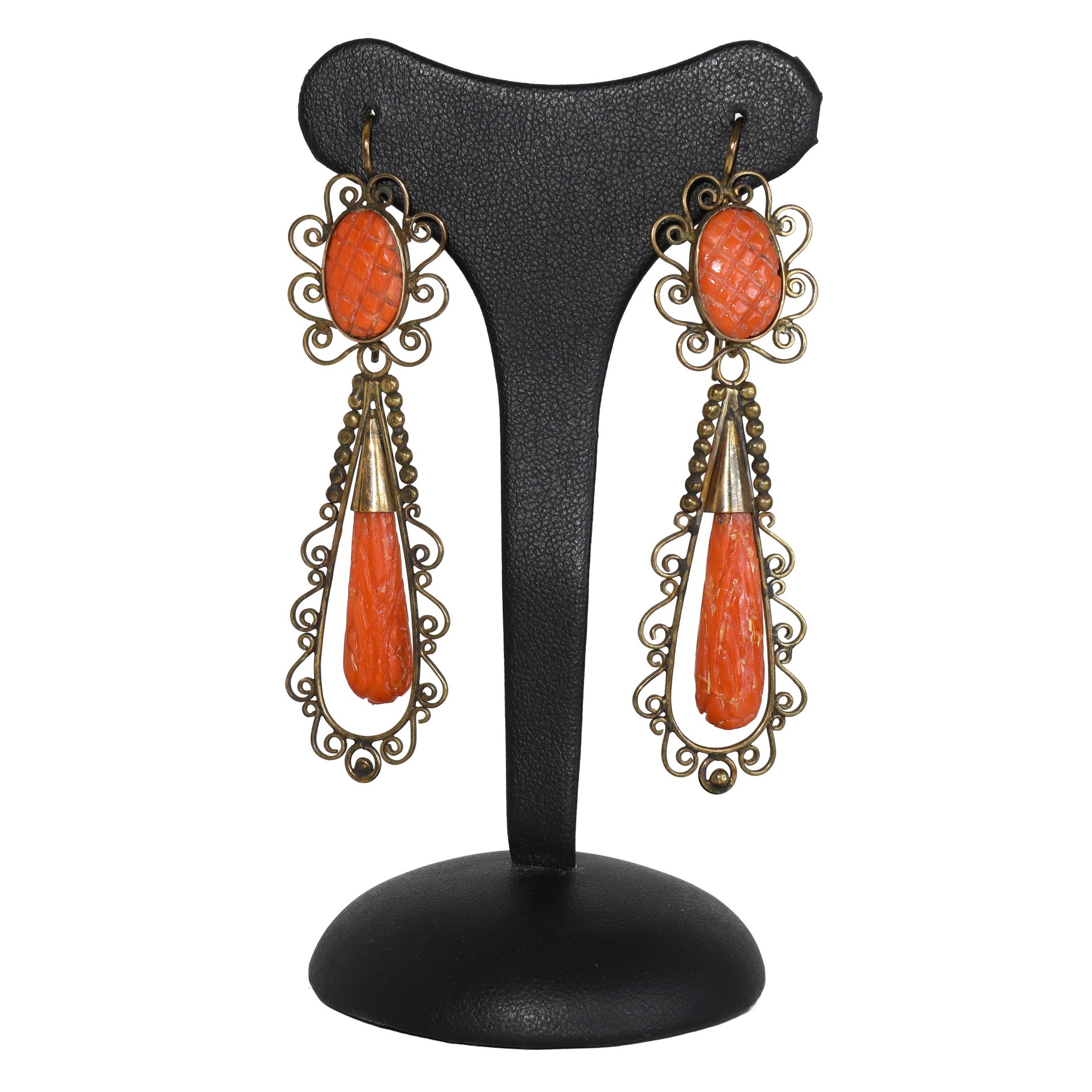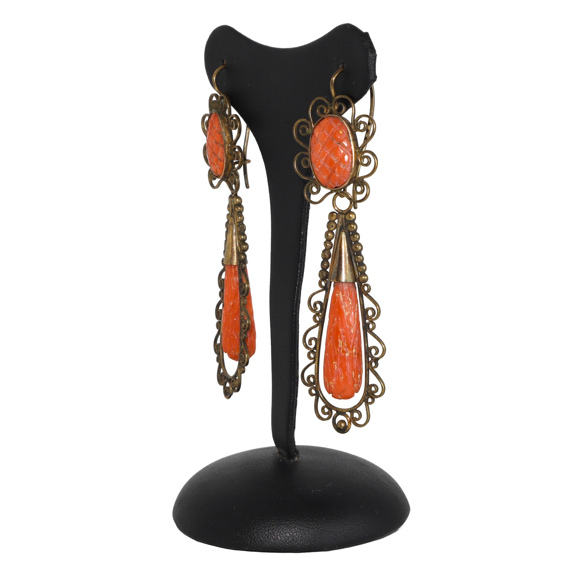 Lotto 173 | Orecchini antichi con pendenti in oro 14 kt e corallo