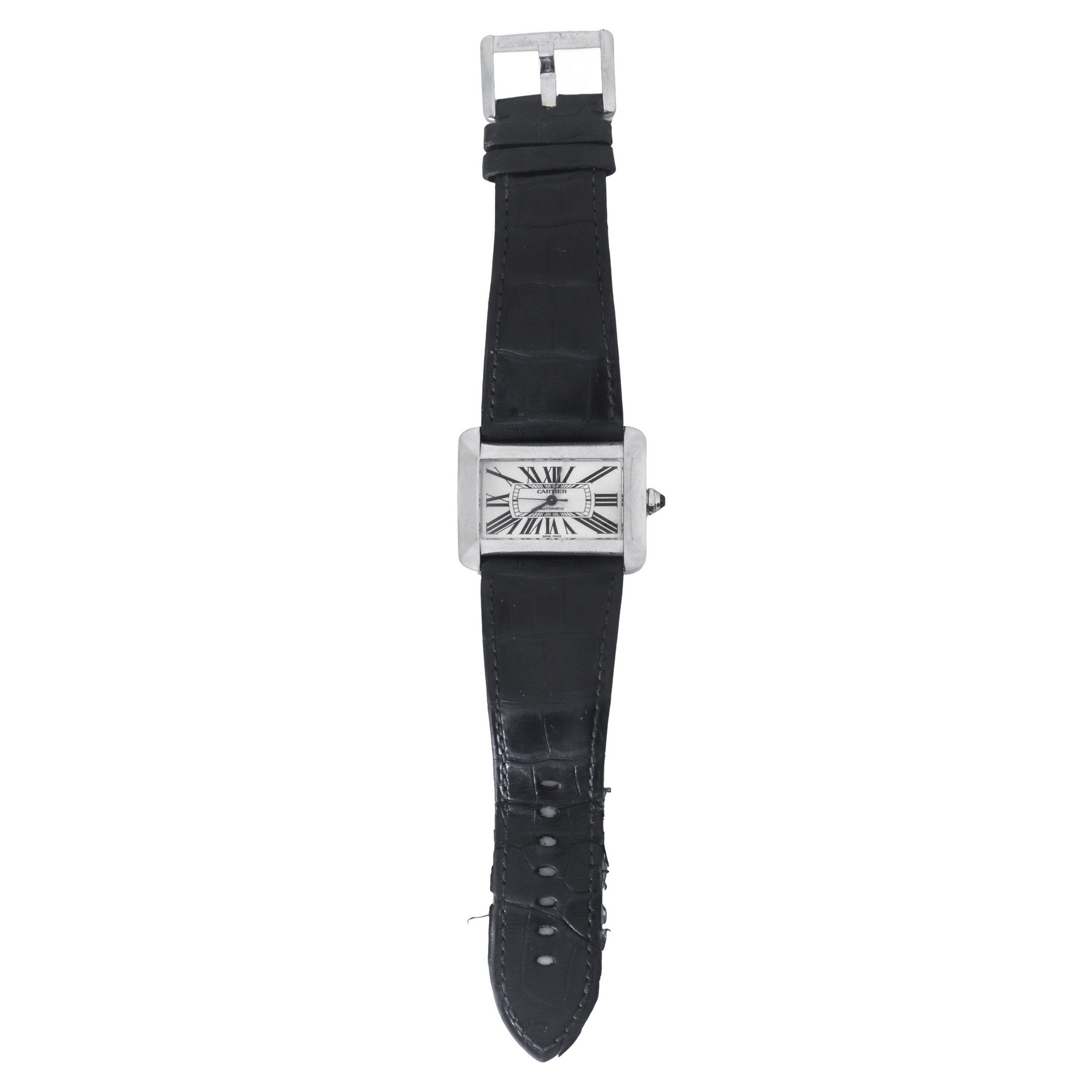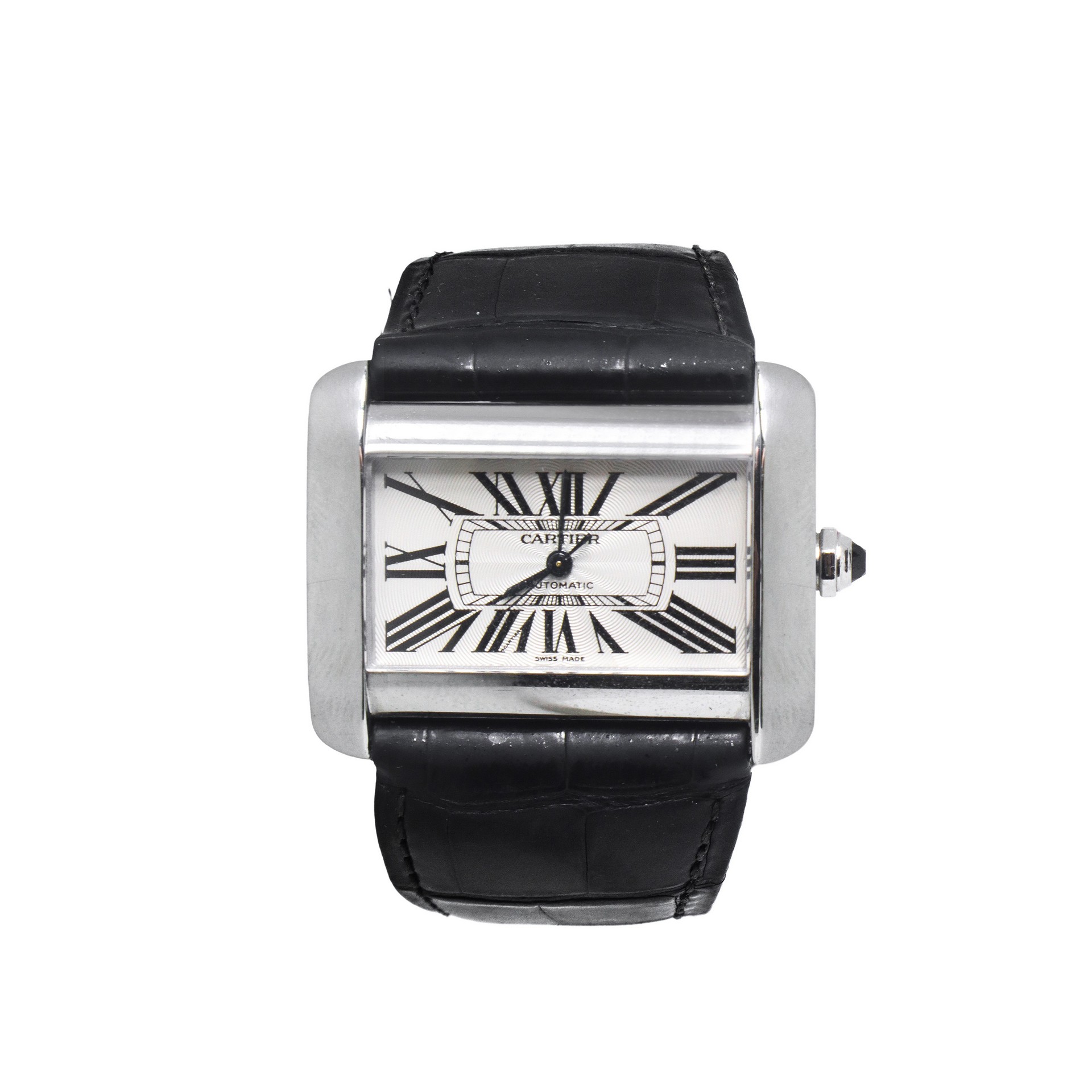 Cartier - Orologio modello Tank Divan Automatic in acciaio inox con cinturino in pelle nero