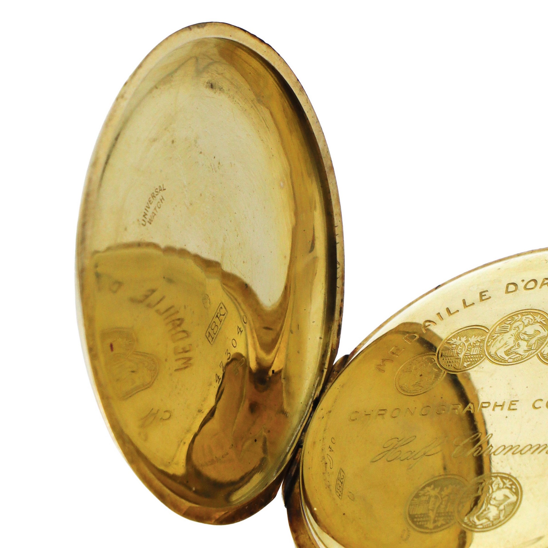 Universal Watch Extra - Orologio da tasca in oro 18 kt con numeri arabi in nero e contatore ausiliare dei secondi, 1920s/1930s